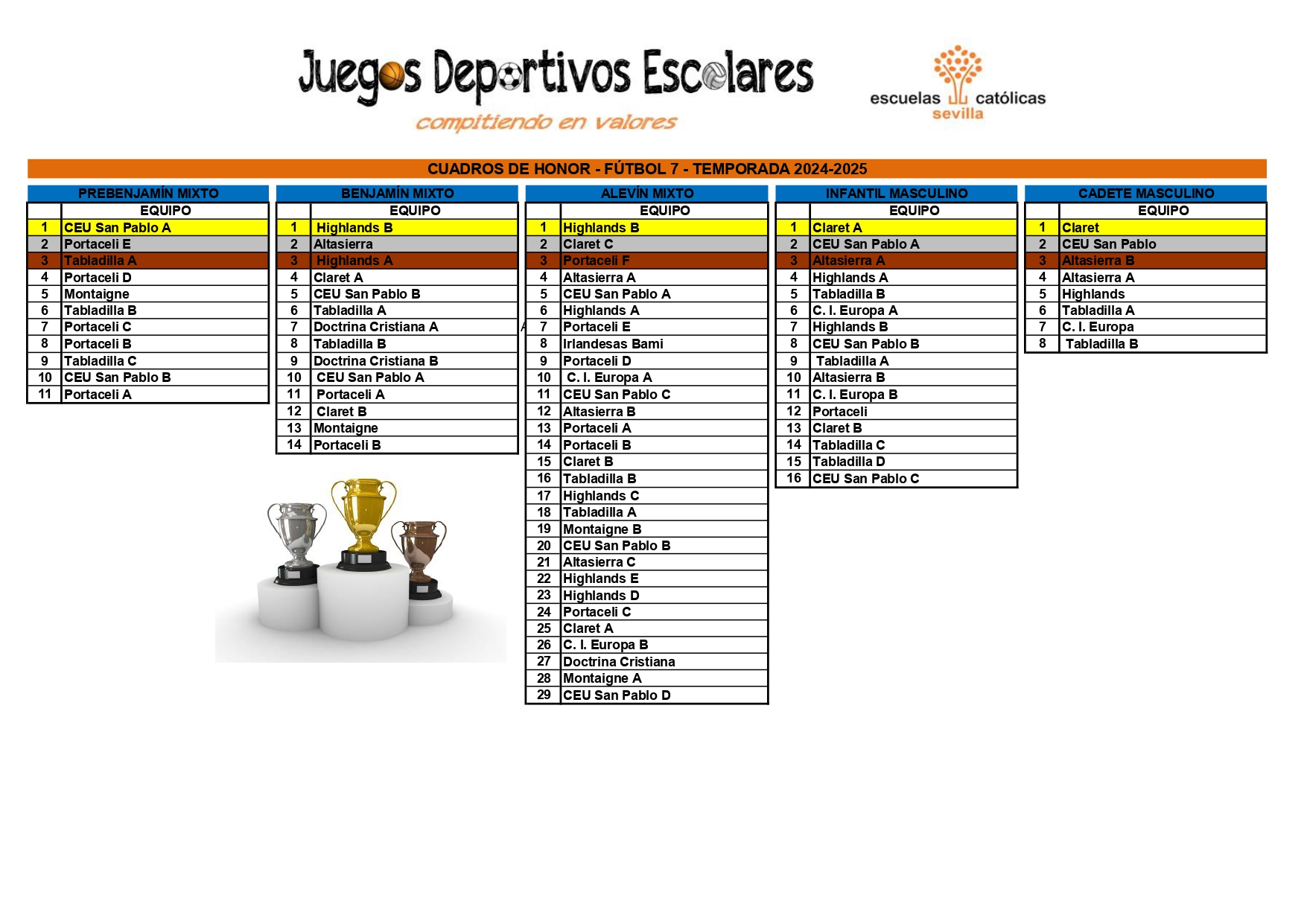 A continuación, podéis consultar el cuadro de honor de la competición de fútbol 7: