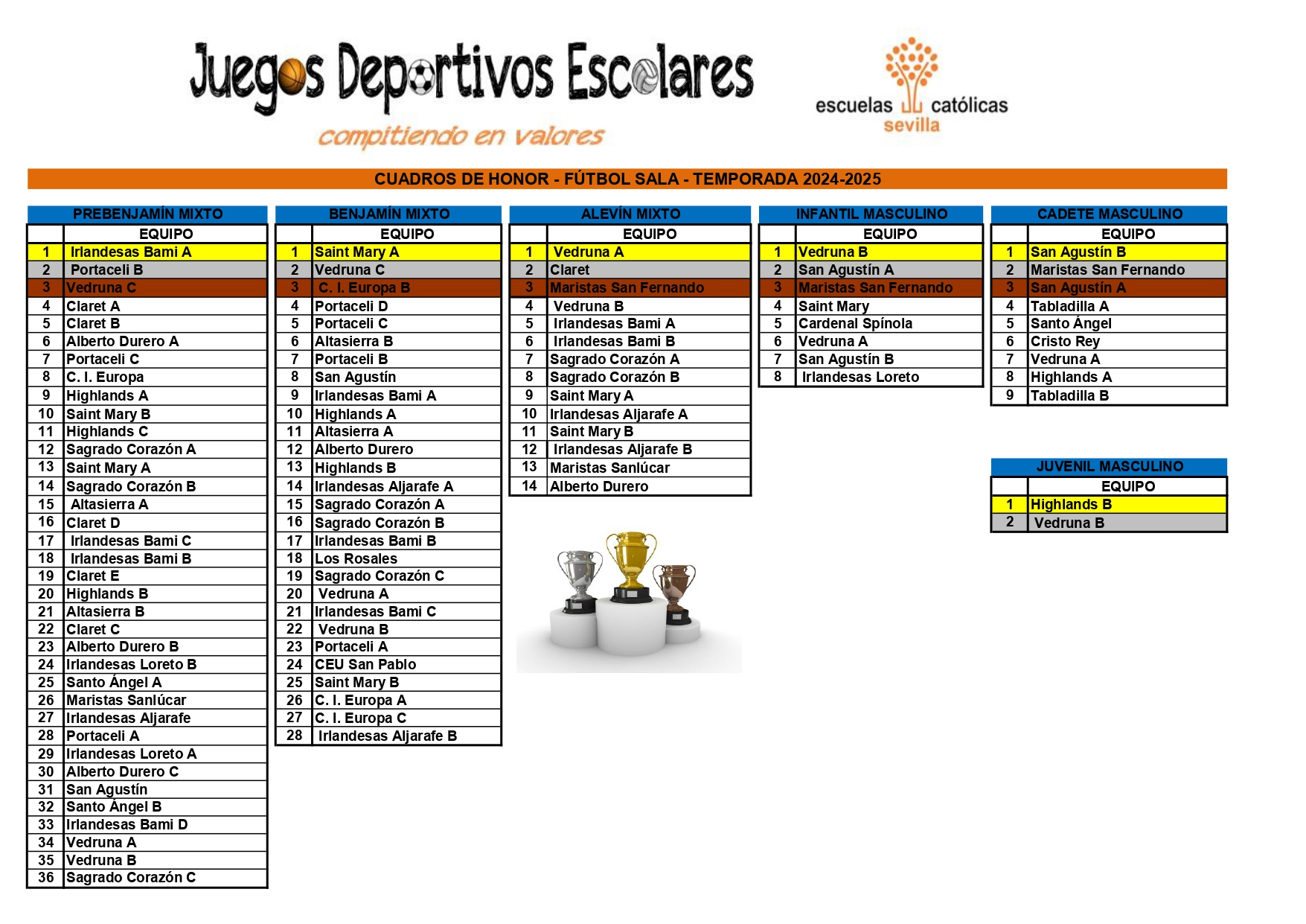 A continuación, podéis consultar el cuadro de honor de la competición de fútbol sala: