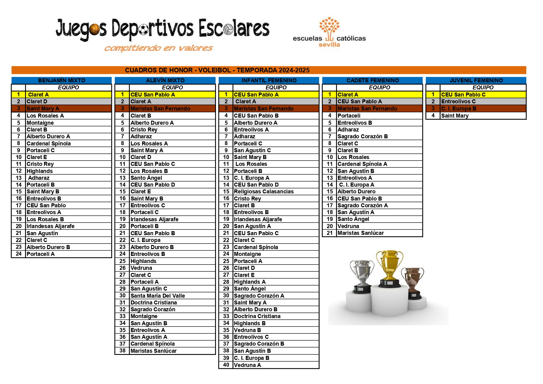 A continuación, podéis consultar el cuadro de honor de la competición de voleibol: