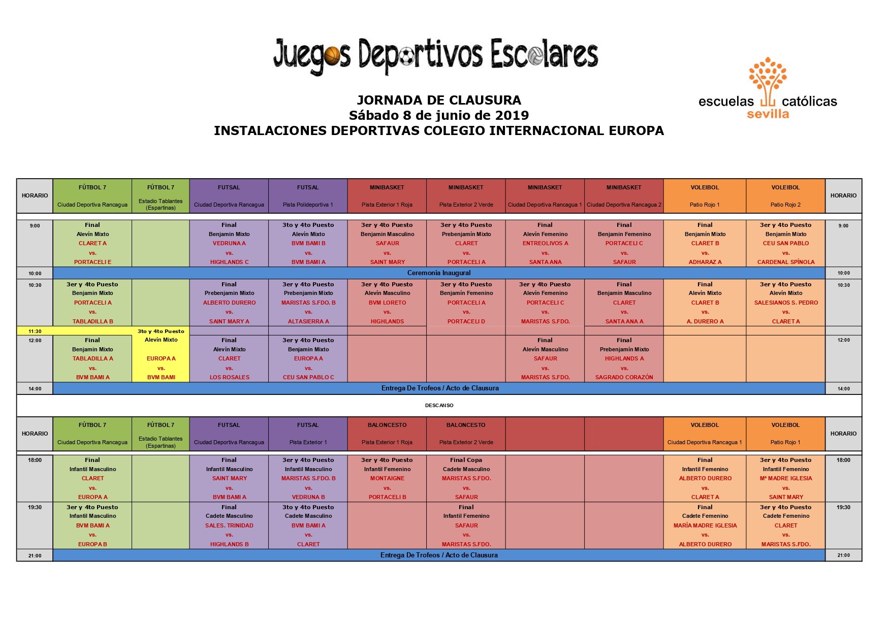 list_640px Ya se conocen los horarios para la celebración de los distintos partidos y entregas de trofeos que formarán parte de la Jornada De Clausura de los XXVIII Juegos Deportivos de Escuelas Católicas Sevilla.